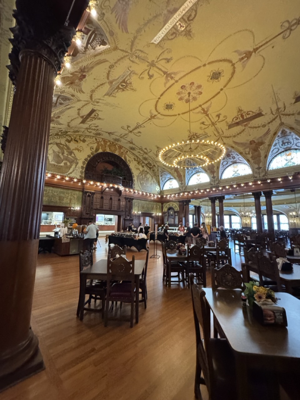 Our youthful tour guide was a fellow gay, mentioned his husband a couple of times, and kept the tour energetic, funny, and informative. I would say this was a highlight of the weekend, too. Wait until you see the rotunda as well as the dinning hall with, yes, those Tiffany windows, too many to count.