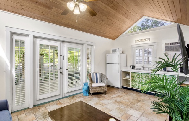 But Eden House is far from just a place to sleep. It’s the kind of hotel where the property itself becomes part of your Key West experience. Start your first evening with a toast at the Tiki Bar, where the atmosphere is equal parts laid-back and festive. Cocktails flow, conversations spark, and it’s easy to find yourself chatting with fellow travelers before you even set foot in town. Billy at the bar was what I needed. Billy and I had some quality time. We talked about Key West, the updates to Eden House, and his perspective as a local about a great deal of things. One day I did not have time to grab a drink at the bar, but I did go and apologize to Billy that I was unable to enjoy his company. He became my favorite fellow office worker that week, if my office was a massive tiki bar by a soothing pool and hot tub, that was, don’t forget, jus outside my private and wonderful set of french doors. I have french doors at home, but no Billy.Â