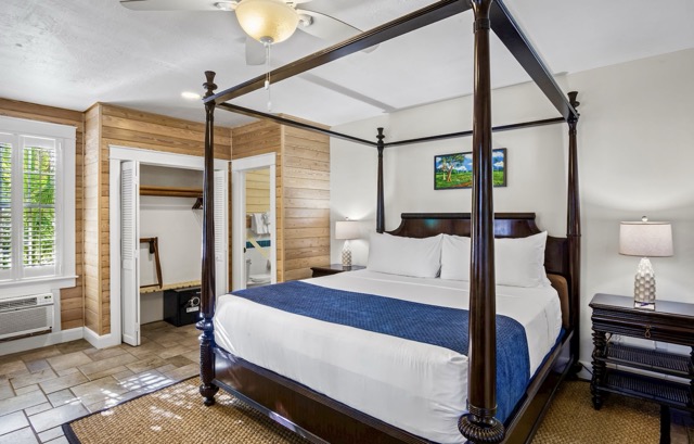 The Deluxe King Island Rooms are the perfect home base, offering a serene space with a touch of tropical flair. The home, excuse me, my room that I had for three nights was like my own escape with its massive shower, stained glass, closets, kitchenette area, enveloping 4-poster bed, quaint work space, relaxing seating area, a main side door to a veranda for more seating, and the opportunity to have my “excuse me, my room has french doors to my private deck overlooking the pool” moment any time I wanted to, which happened several times each day. The room was more than nice, it was a space that transported you physically and mentally to the southeastern US and gave you that warm hospitality hug every time you were there.Â