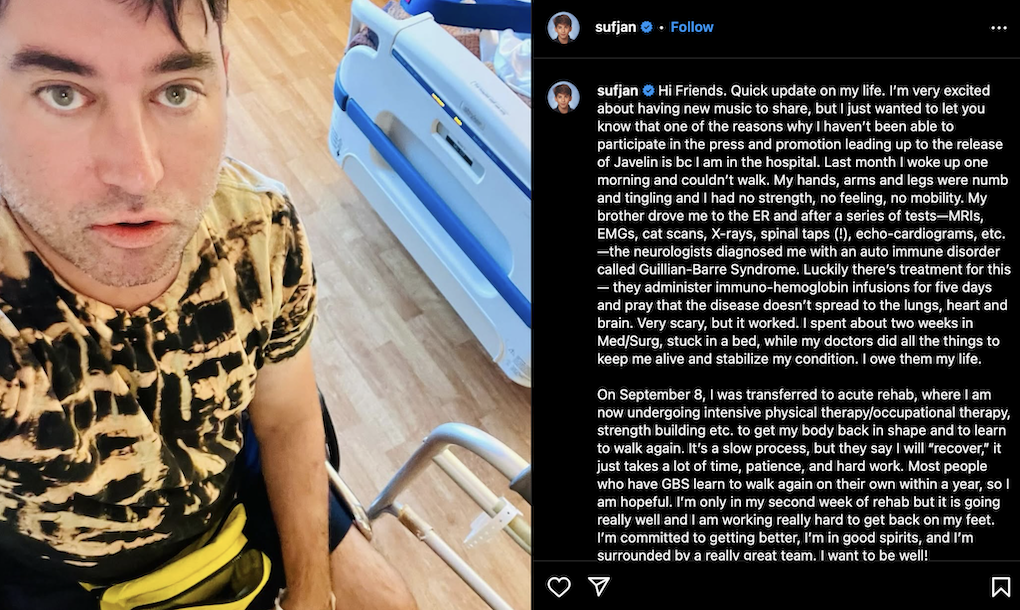 But if there’s one thing Sufjan Stevens has always known how to do, it’s move through the hardest parts of life with grace—sometimes quietly, sometimes mournfully, always beautifully. While most of us were just trying to absorb the news, Stevens was already putting in the work. He entered acute rehab in September and began the long road toward recovery. It’s a slow, grueling process, but he remained committed to healing—physically and emotionally.