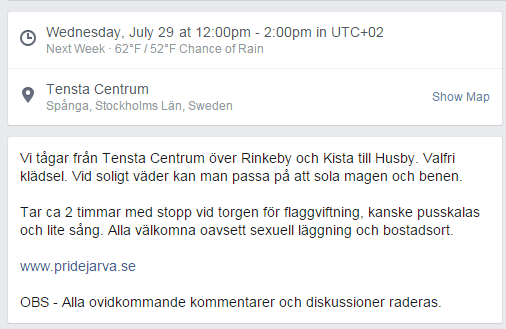 On July 29, a gay pride parade is scheduled in Sweden. But, you see, this is no ordinary gay pride parade. This gay pride parade was created by Jan Sjunnesson, former editor-in-chief for the Samtiden newspaper in Sweden, which is owned by the nationalist Sweden Democrats party (… think of the Sweden Democrats as being kind of like the Conservatives … which means that they’re considered “extreme far-right” in Sweden). The parade is scheduled to go through Tensta and Husby – two areas where Muslim immigrants are more than 75% of the population.