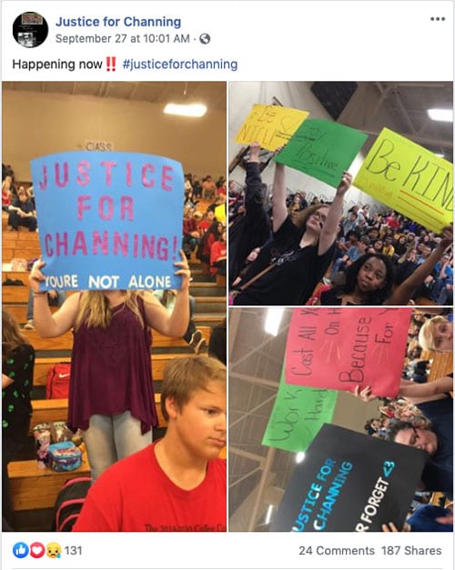 When Channing’s friend attempted to make a statement wearing t-shirts asking for “Justice for Channing,” the principal demanded they remove the shirts.