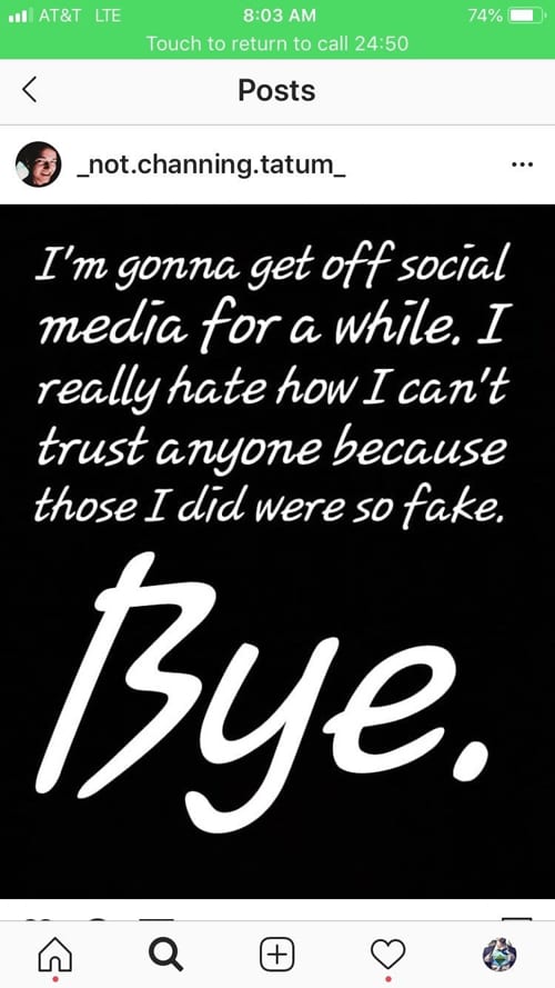 “When he saw the screenshots on social media he called some people around 10 p.m. Sunday night, freaking out,” he added. “His last posting on Instagram was about people he couldn’t trust.”