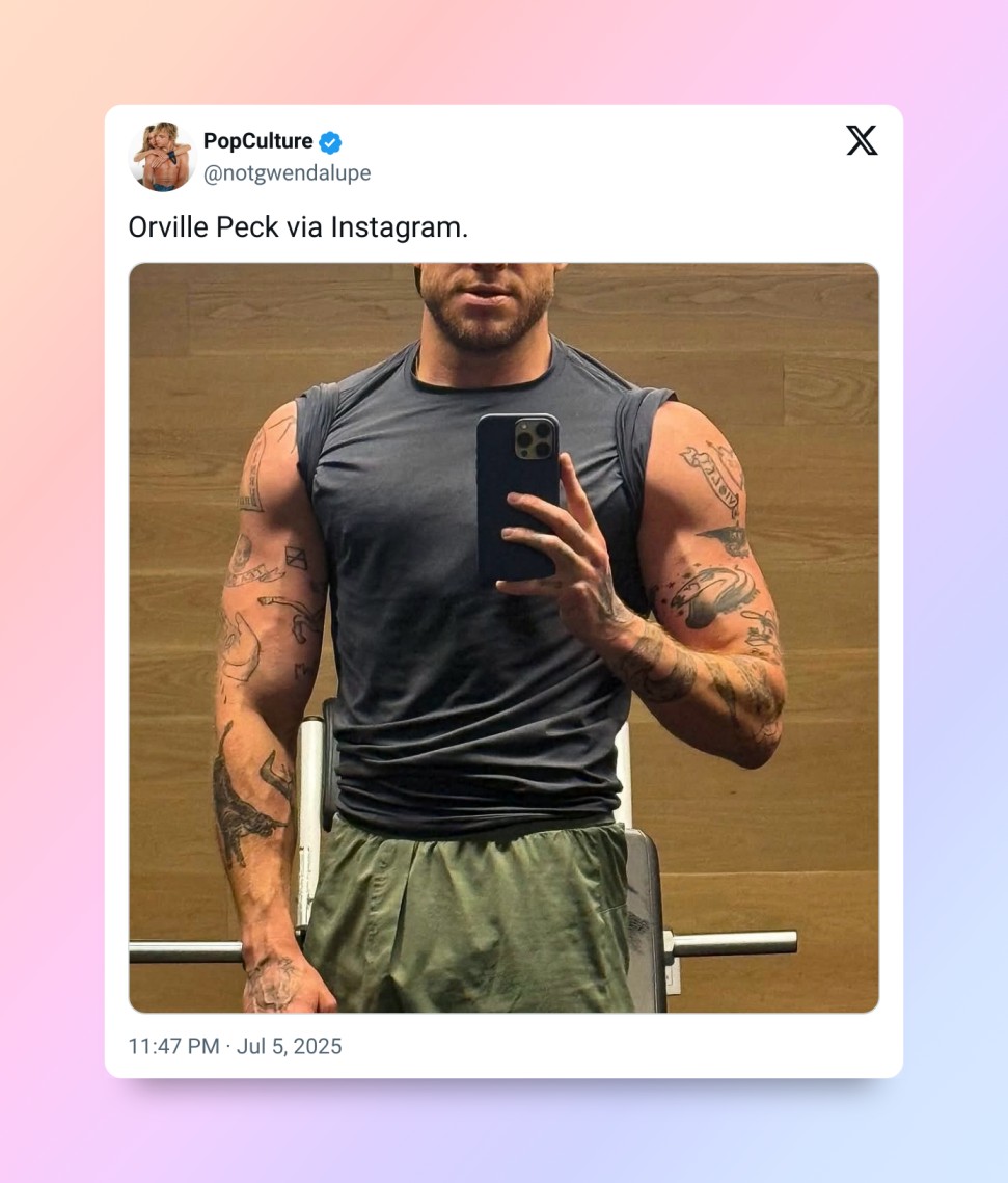 In a rare act of gay public service, masked crooner Orville Peck took to Instagram—not to tease a new track or plug a tour—but to bless us with a sleeveless gym selfie so powerful it could double as an honorary Pride flag.