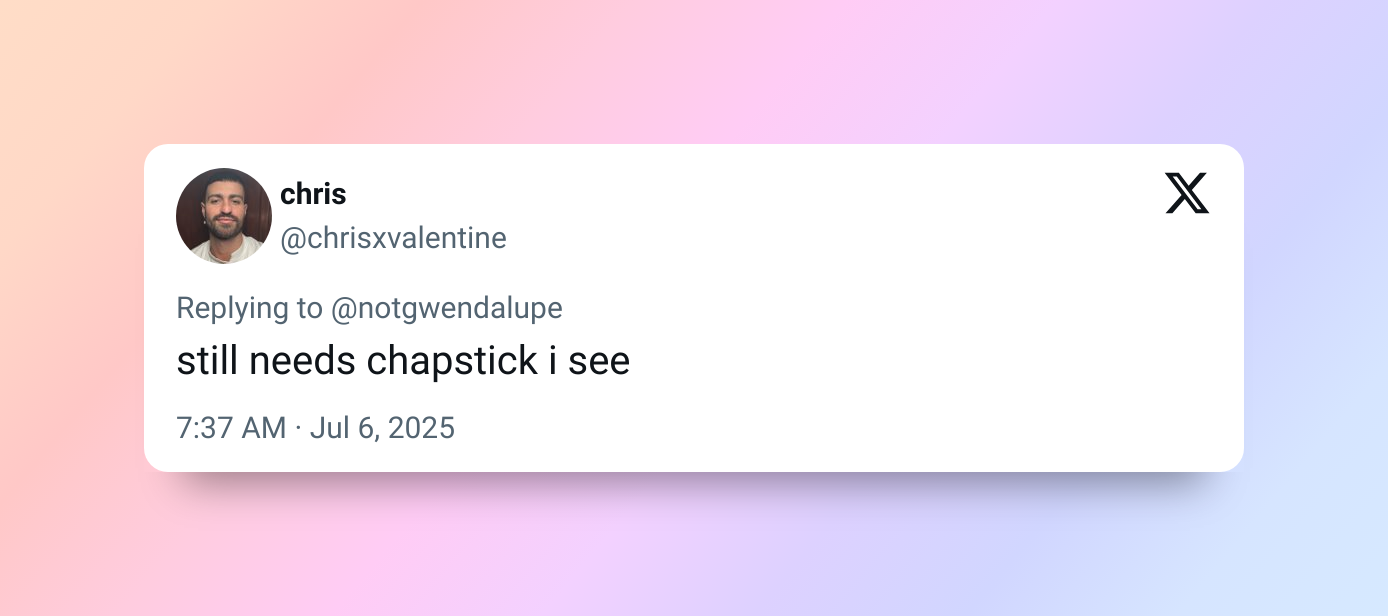 “Still needs chapstick I see,” while another added with brutal honesty: