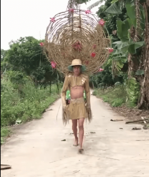 A video is circulating online that shows asian men modeling various elaborate costumes made from eco-friendly materials that mocks the style of the Victoria's Secret Fashion Show–and this queen is giving us our banana leaf-loving life!