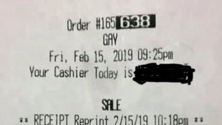 WTVR reports that two cousins had spent about 15 minutes waiting for their food from the Herico County, Virginia restaurant. When they were on their way out, they noticed a word printed on their receipt. In place of the customer’s name, their receipt said the word “gay.”