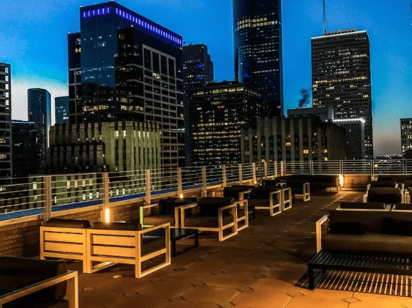 Something else to pass the time and a great place to watch the sun dart between the buildings as it sets for the evening/night os atop Le Meridien Hotel. Depending on the time of year … oh heck, start as early as you can, maybe 4 and marvel at the drinks, architecture, and eye candy while taking in more of Houston.