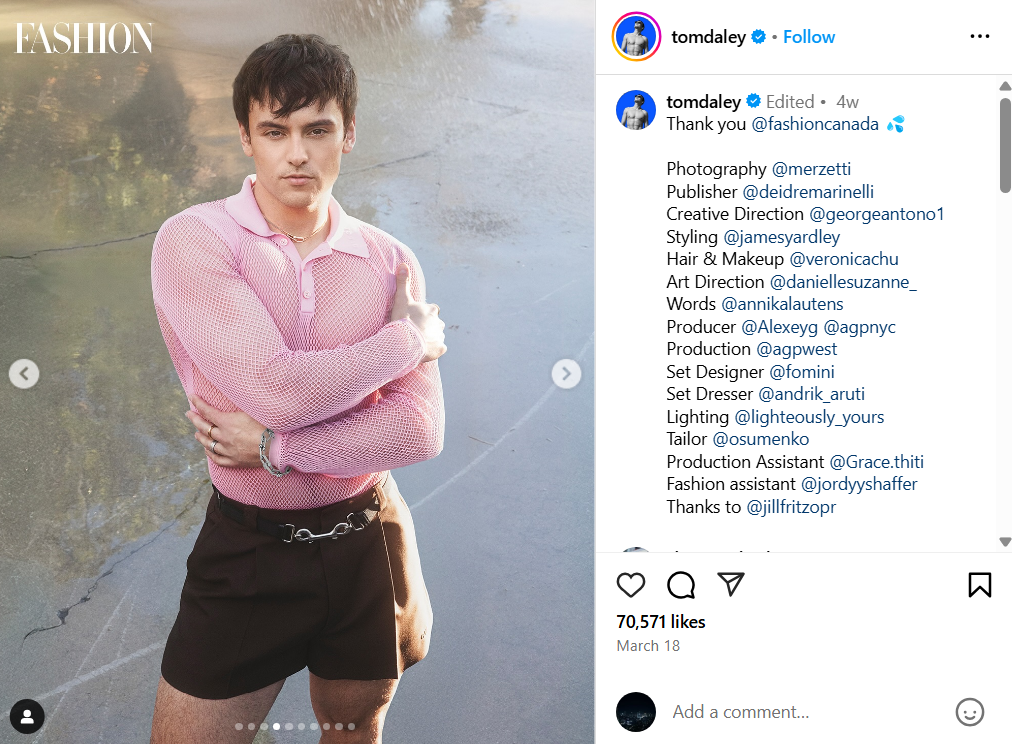 And while we laugh, cry, and aggressively double-tap, let’s also honor the broader arc here. Daley isn’t just an out gay man succeeding; he’s doing it with elegance, heart, and a damn good cardigan. He’s proof that queerness isn’t a side note to success — it is the success. It’s the flavor, the fuel, the full story.
