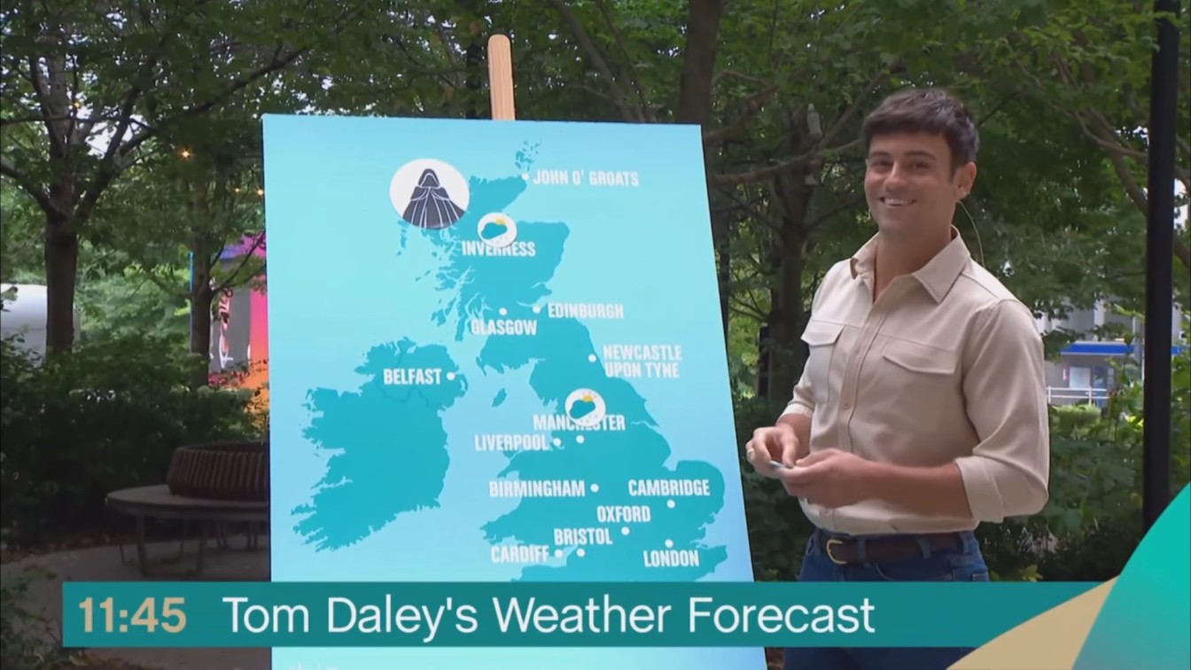 Alison Hammond and Dermot O’Leary, standing in for the usual duo of Cat Deeley and Ben Shephard, welcomed Tom for a candid chat about his career and his childhood dreams. But in true This Morning fashion, things took a turn for the fabulous when the topic veered from Olympic glory to Tom’s teenage longing for a completely different career—reading the weather on the radio.