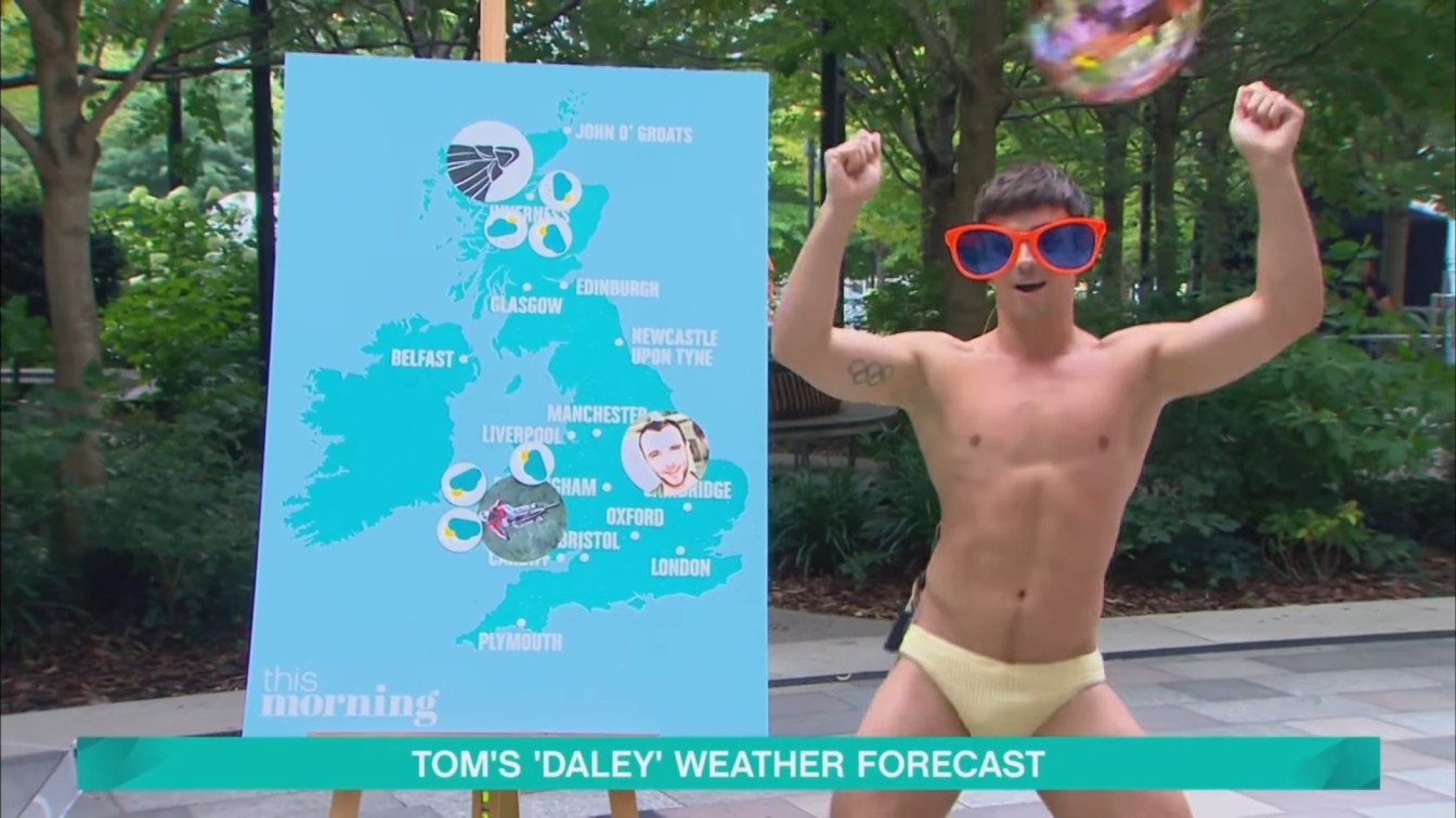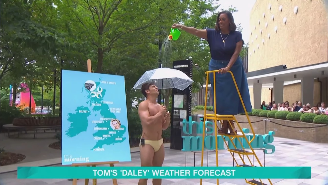 In a world where the weather forecast is usually a mundane prelude to the day’s drizzle or sunshine, This Morning took a bold step into the absurdly fun by turning Tom Daley’s dream into a hilarious reality. On Thursday, July 24, viewers were treated to a special segment where the former Olympic diver swapped his speedos for—well, more speedos, but with a weather twist.