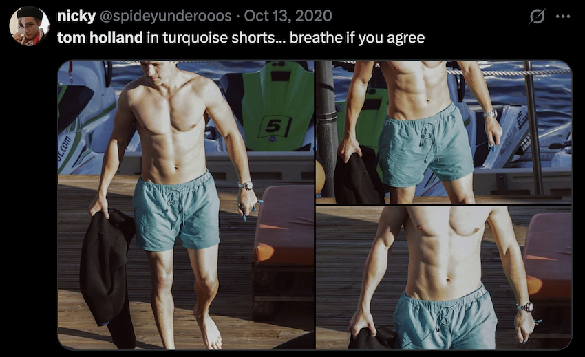 And let’s face it… whether it’s an algorithm or an angle, Tom Holland just keeps getting hotter.