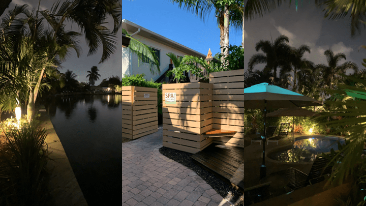 I’ve experienced a handful of clothing-optional guest houses and they’ve all had their own feel and this guesthouse would be no different. As soon as you enter the gated drive, the Cabanas presents itself as a place removed from the outside world. Even though it is just off Northeast 26th Street and Federal, two arteries of the Fort Lauderdale / Wilton Manors area, the Cabanas and its multi-building complex, canal-side location, and several poolside relaxation spots, it was all just unexpected and smile-inspiring. The safety and privacy of the resort is immediately noticed. With the security gate, with the property surrounded by privacy fencing, you enter into a lush, tropical water front oasis. My room was on the north side of the property, along the water, and the seclusion was very satisfying.