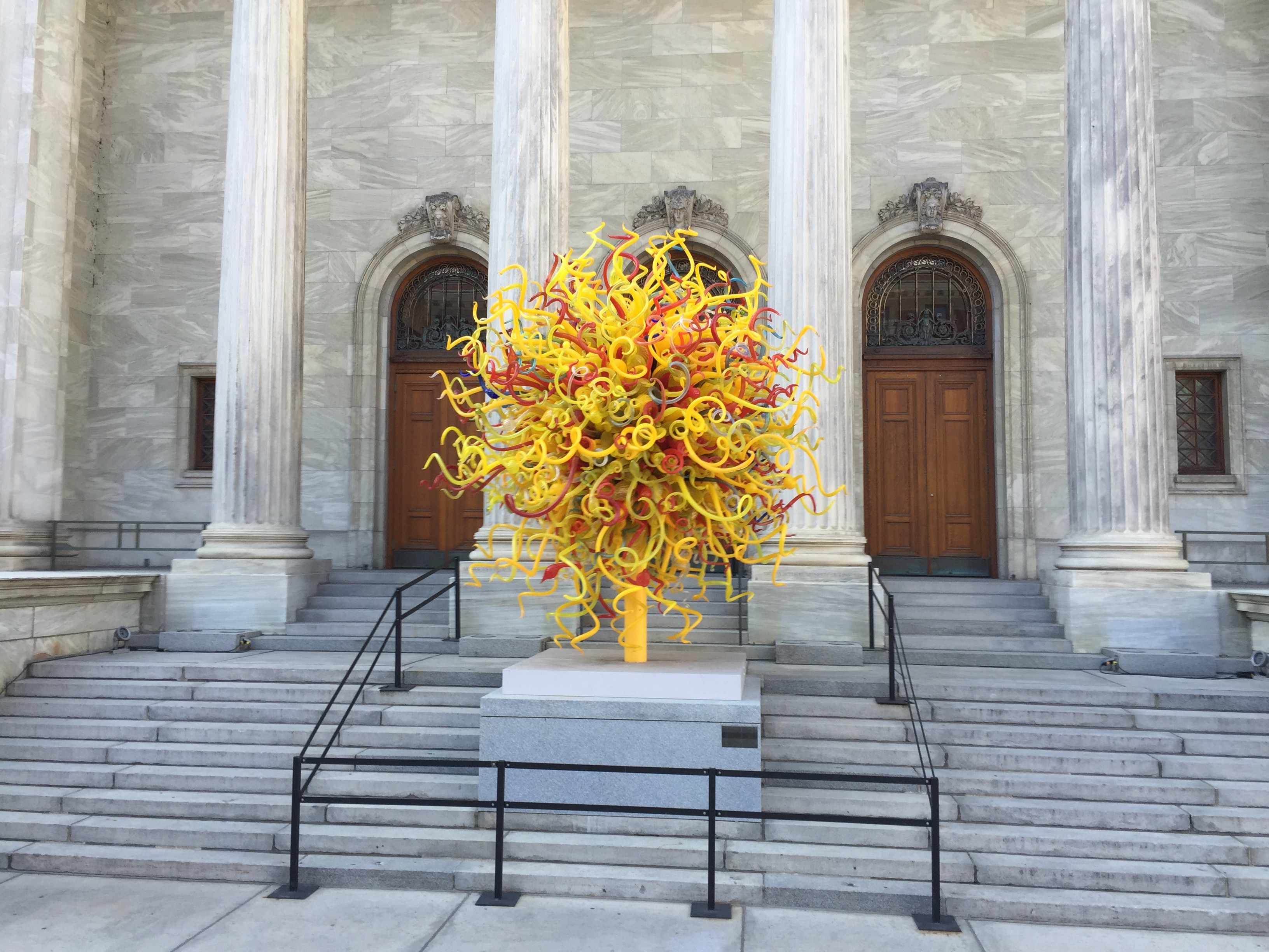 Claude Cormier + associés, Landscape Architecture and Urban Design, was in charge of the first installation, PINK BALLS. I had seen the pink balls in person (don't take that out of context) and was in awe of how something could be so unifying, beautiful, simplistic, and cool. Not only cool as in awesome, but cool as in cooling the streets. Now the streets are shadowed not just by pink orbs, but a full rainbow of globes."The balls, which are cast-resin, were made in Quebec, and hang on a rope system made by a local business. Members of the community hand-strung the balls, essentially participating in a large-scale communal craft project in the streets. The balls will be carefully taken down in September and stored for next year’s installation.