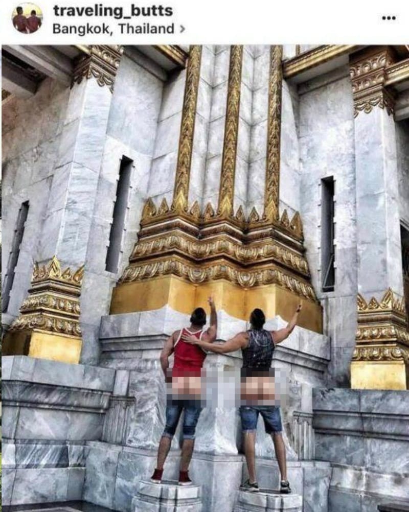 During their most recent adventure, the couple set off to Bangkok, Thailand to release their bums into other parts of the world. To no surprise, the couple dropped their pants and had their rears as the center focus for photographs in Thailand. They decide to take photos in front of War Arun and Wat Pho, sacred, Buddist temples. Yeah, it sounds completely smart to be nude around sacred temples, guys. What were you thinking?!