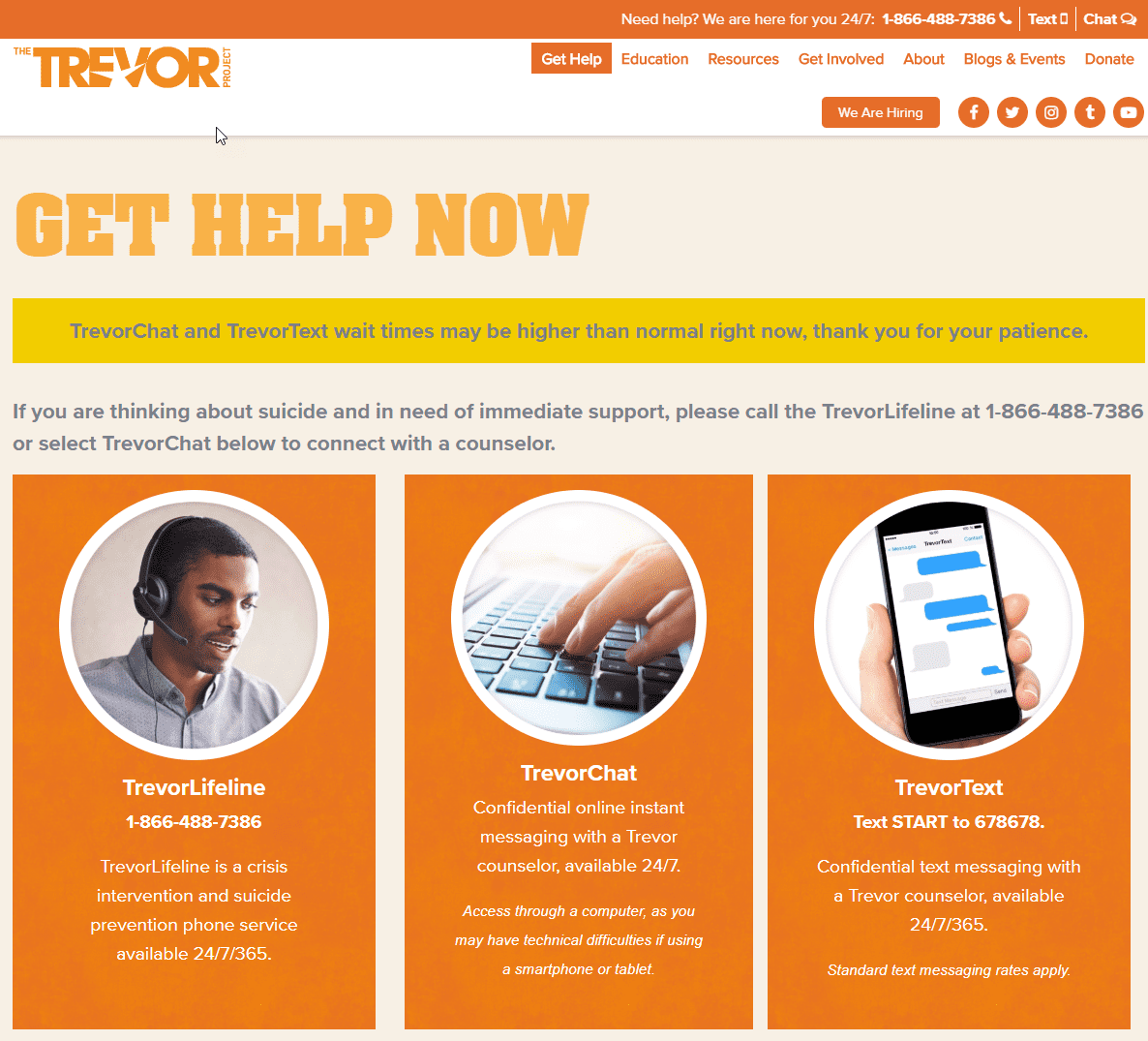 If you or someone you know is feeling hopeless or suicidal, our trained crisis counselors are available 24/7 at 1-866-488-7386 via chat www.TheTrevorProject.org/Help, or by texting START to 678678.