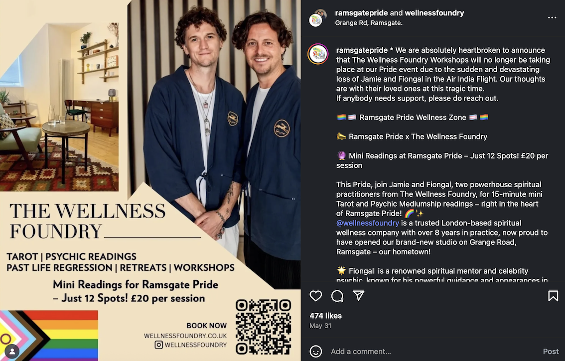 Heartfelt tributes are being shared across the world following the tragic deaths of Jamie Ray Greenlaw-Meek and his husband, Fiongal Greenlaw-Meek, the founders of the spiritual wellness brand The Wellness Foundry.