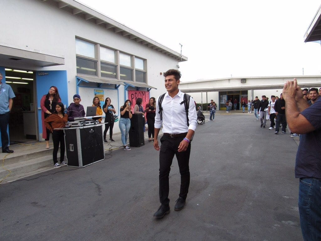The crowds cheered for Pineda as he approached Duarte with Christina Perri’s “A Thousand Years” playing in the air. In the video, students are heard saying “You go, Erick! You’re my hero!” When Pineda reached Duarte the two friends embraced in a hug and Pineda asks him if he will accompany him to the school function—to which you see Pineda accept.