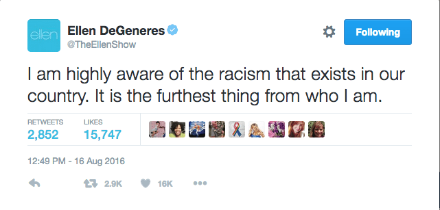 Such bullshit. The meds is always looking for something stupid to twist. Anyone who knows and have followed Ellen knows that the last thing she is , is racist. Grow up people and start turning your attention to the sick bastards that are killing innocent people and thinking it's all ok.