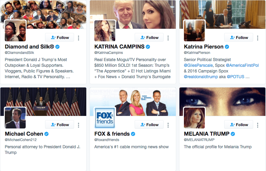 I would follow none of those pages. I made the mistake of watching a couple of the Diamond and Silk videos before. I know I lost grey matter after watching these brainwashed individuals.