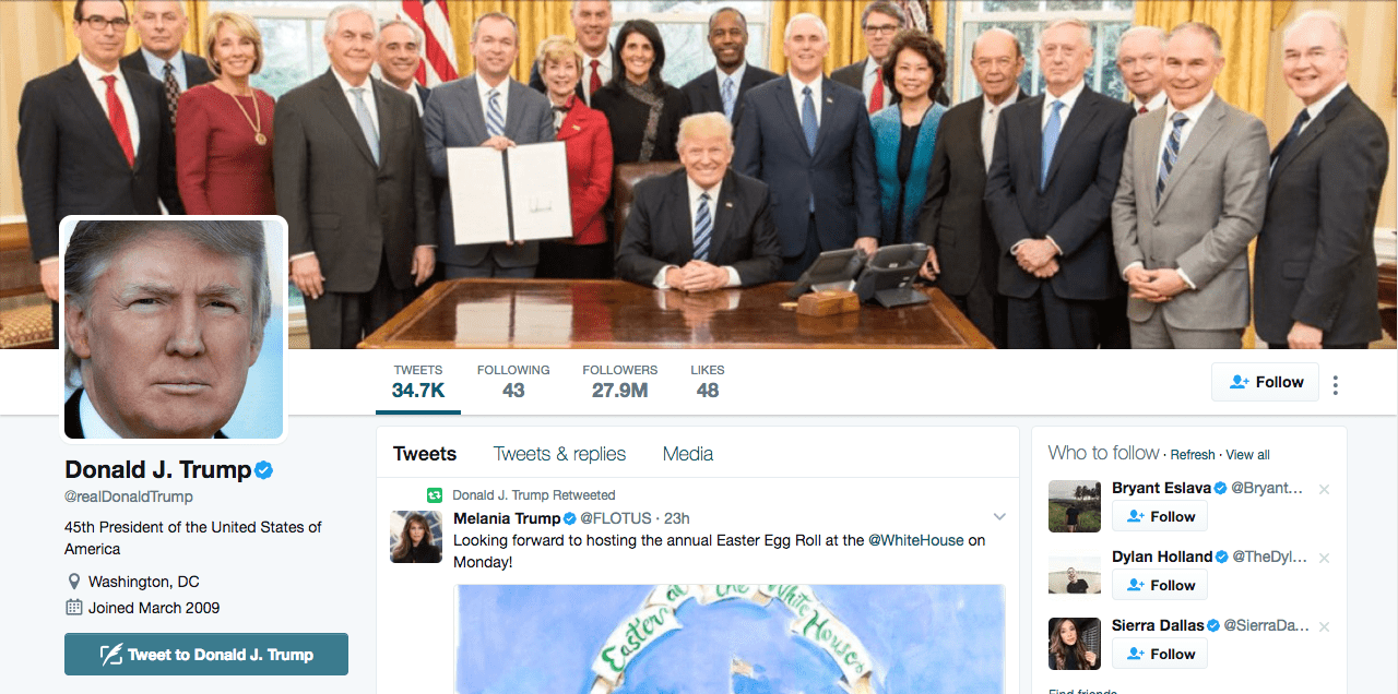 But what does it say about a person that has over 27 million followers and only follows 43 accounts himself?