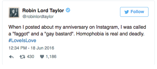 We loved his statement at the end, "We are proud and unafraid." Unfortunately he received tweets calling him some not so nice names.