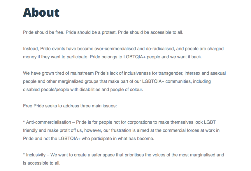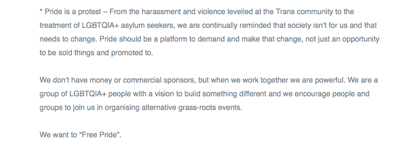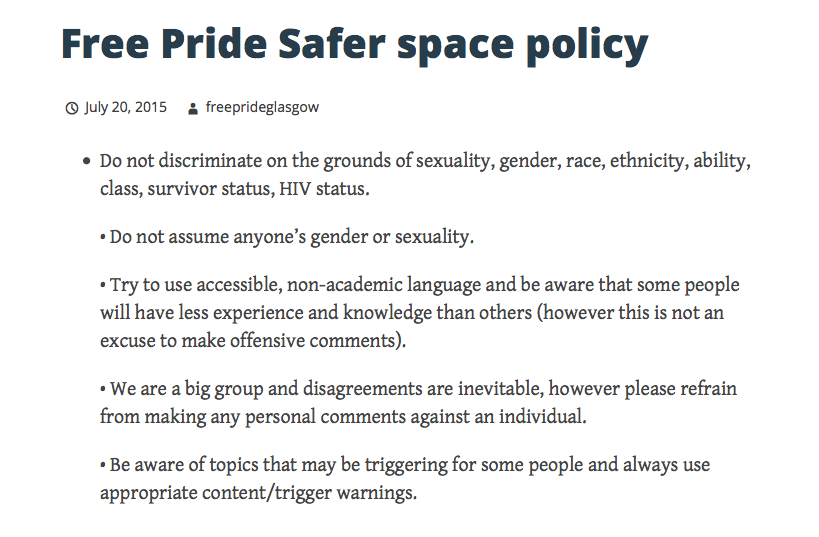 The Free Pride does not speak for all of Glasgow, Scotland nor all the Pride celebrants. The decision earned a rebuke from the main Glasgow Pride event.