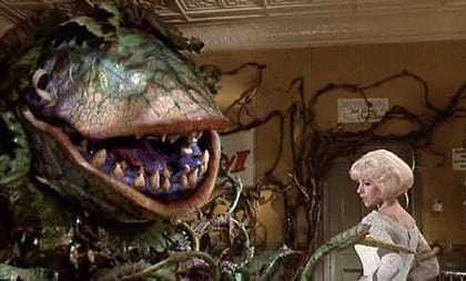 Little Shop of Horrors, according to City Center, is a "sci-fi musical about Seymour Krelborn (Jake Gyllenhaal), a hapless florist shop worker who pursues a doomed romance with his ditzy, lovable co-worker Audrey (Ellen Greene) by acquiring an R&B-singing plant (Eddie Cooper) that feeds on human blood."