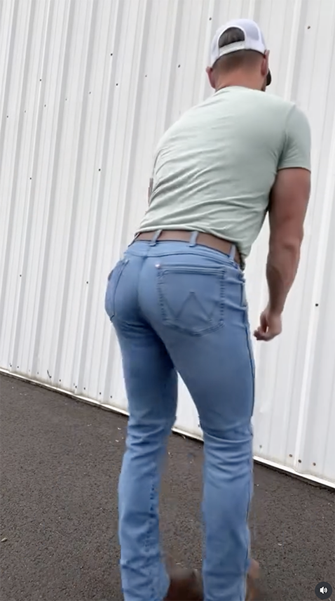 Of course, Corey isn’t the only one showing off what Wrangler jeans can do. The WranglerButts hashtag is packed with other handsome men flaunting their goods. Some are naturally gifted thanks to genetics and good old-fashioned ranch work. Others clearly know their way around a squat rack and take glutes day at the gym very seriously. It’s a beautiful spectrum of booty, and it makes scrolling through the feed a highly rewarding experience. Wrangler has turned butts into branding and somehow made it wholesome, hot, and hilarious all at once.