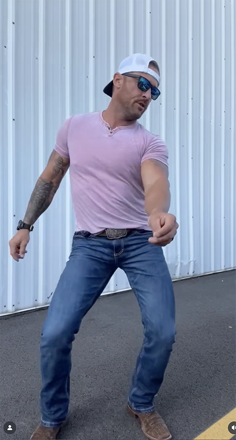 Leading the pack is Corey Jones, also known on IG as 40.aintshit. Corey is a straight, married country guy who became one of the breakout stars of the campaign thanks to his carefree energy and, well, his exceptional Wrangler-clad rear. His dance skills might be debated, but his backside? Universally celebrated. He’s easygoing, funny, and incredibly watchable. It’s clear that he’s enjoying himself, and that relaxed confidence only adds to the charm.